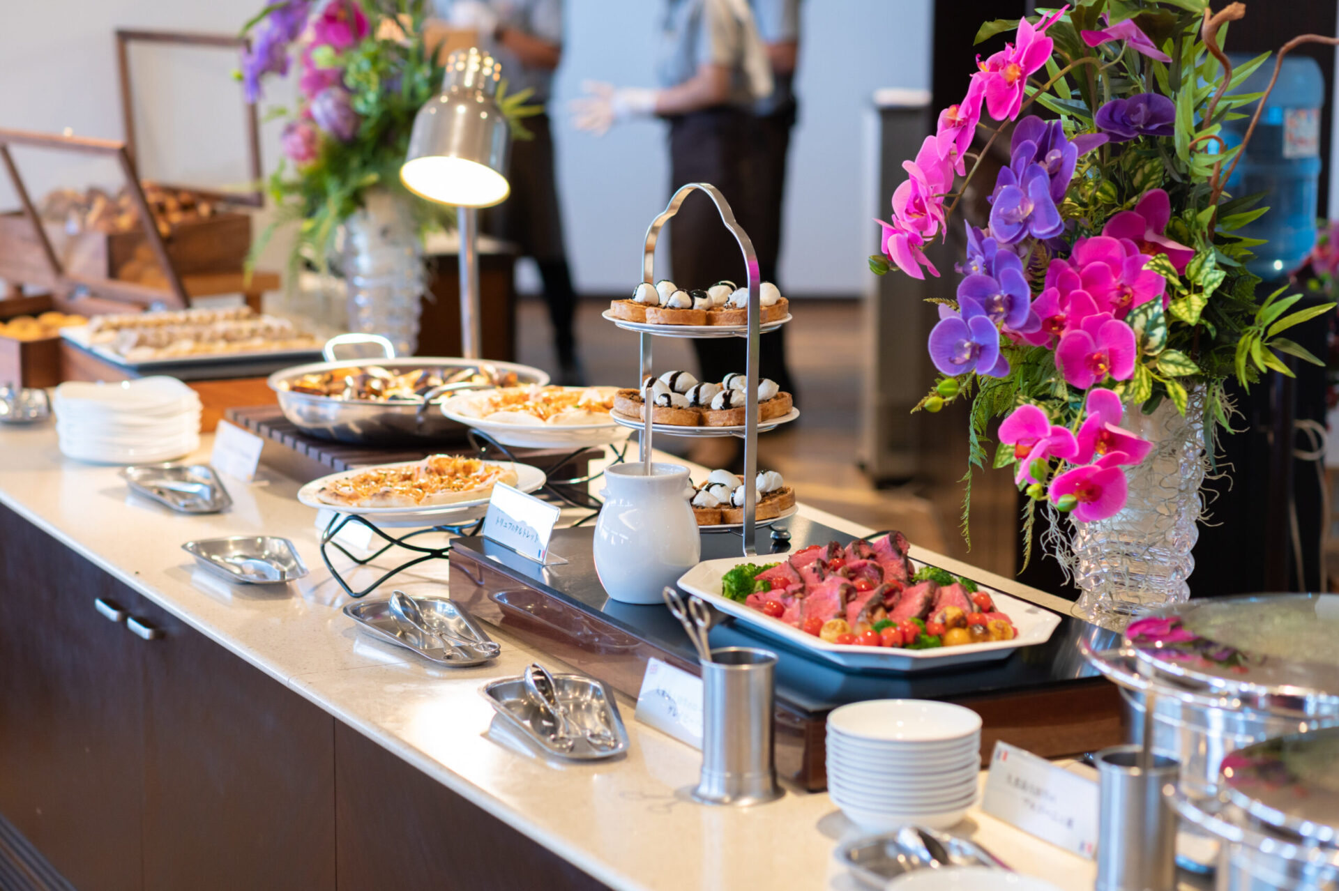 お食事はとびっきり豪華に。だけどビュッフェスタイルでカジュアルに楽しめるウェディングパーティとなりました。